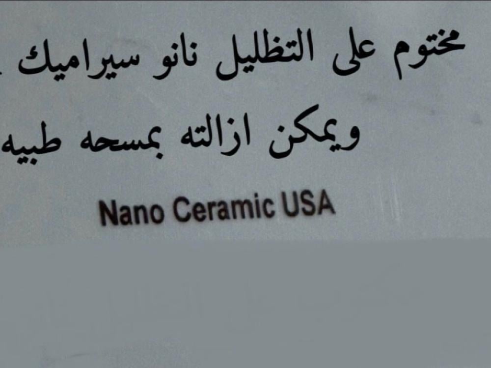 • مختوم على التظليل (Nano Ceramic USA) يمكن ازالته بمسحه طبيه.